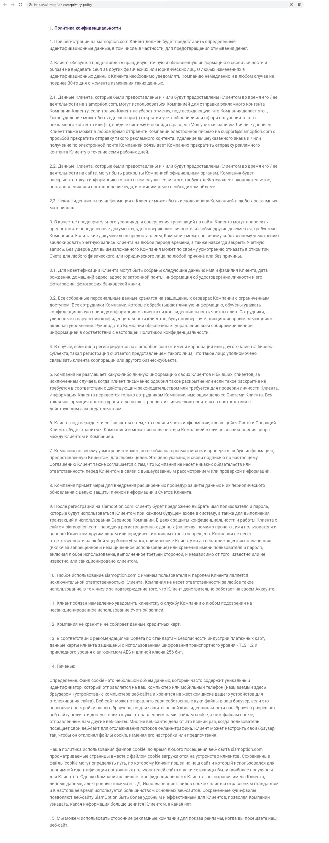 Жулики Сиам Опцион заморочились и для демонстрации своей серьёзности создали политику конфиденциальности. Но даже в ней они указали то, что компания может просматривать личные данные пользователя и информации его счёта, таким образом и пользоваться его счётом, а значит может спокойно украсть его деньги.