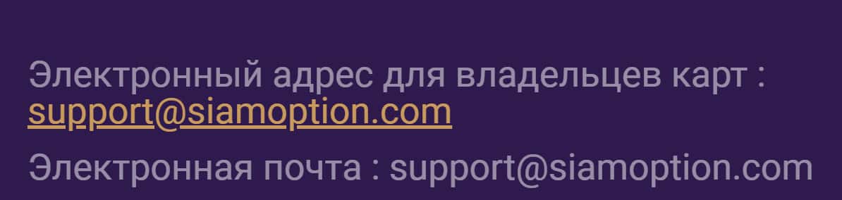 К большому сожалению адрес электронной почты компании разводил Сиам Опцион остаётся активным. Он и на сегодняшний день работает. Жулики продолжают обманывать клиентов и разводить их на деньги прямо сейчас... Мошенники могут уговаривать своих клиентов по электронной почте и обещать им всё что угодно, лишь бы они вносили деньги.