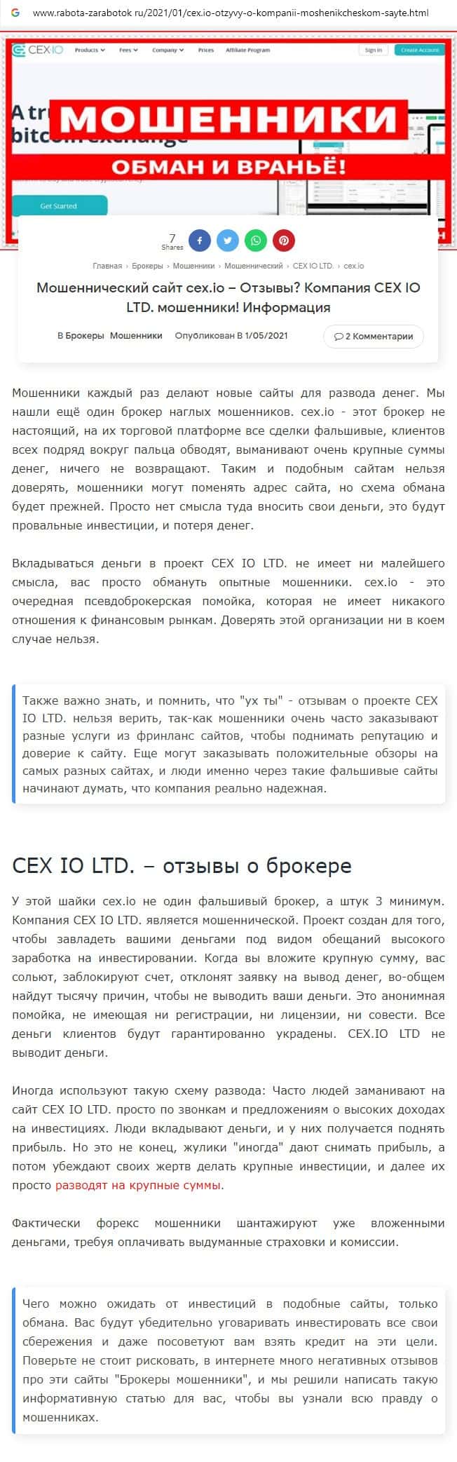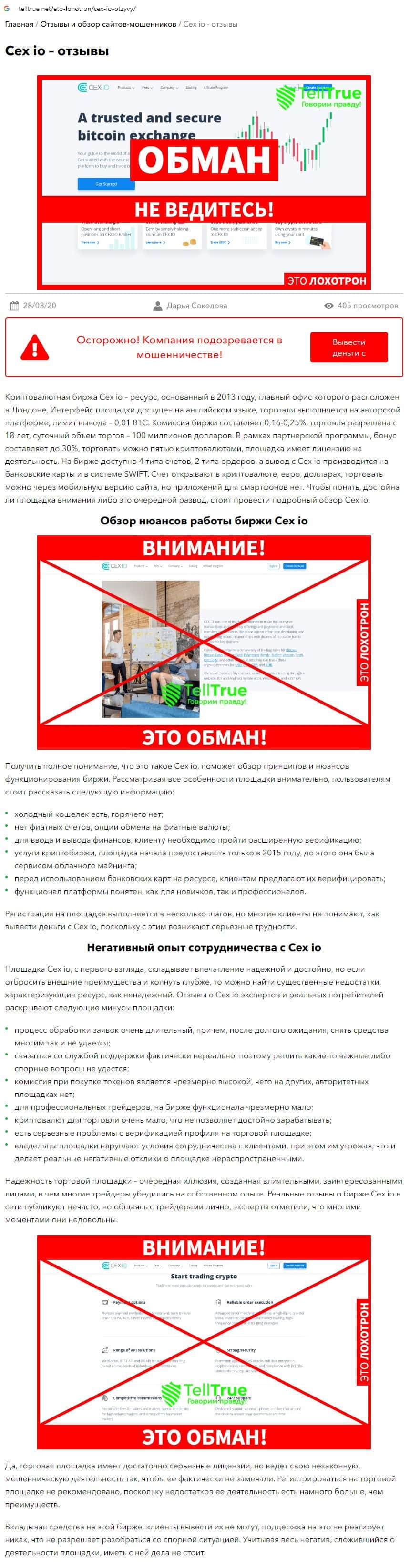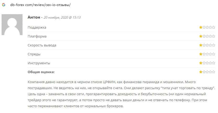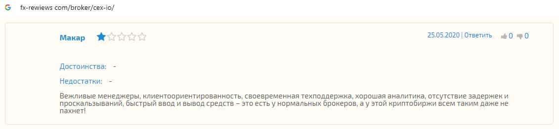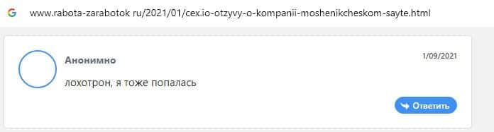 Отзывы о шулерах CEX, ныне присутствующие во всемирной паутине