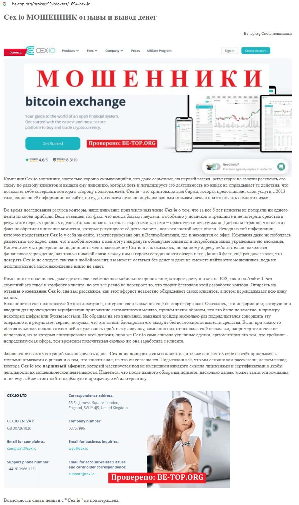 Связываться с мошеннической организацией CEX не рекомендуем потому, что возможность вывести деньги со счета на сайте шулеров не подтверждена.