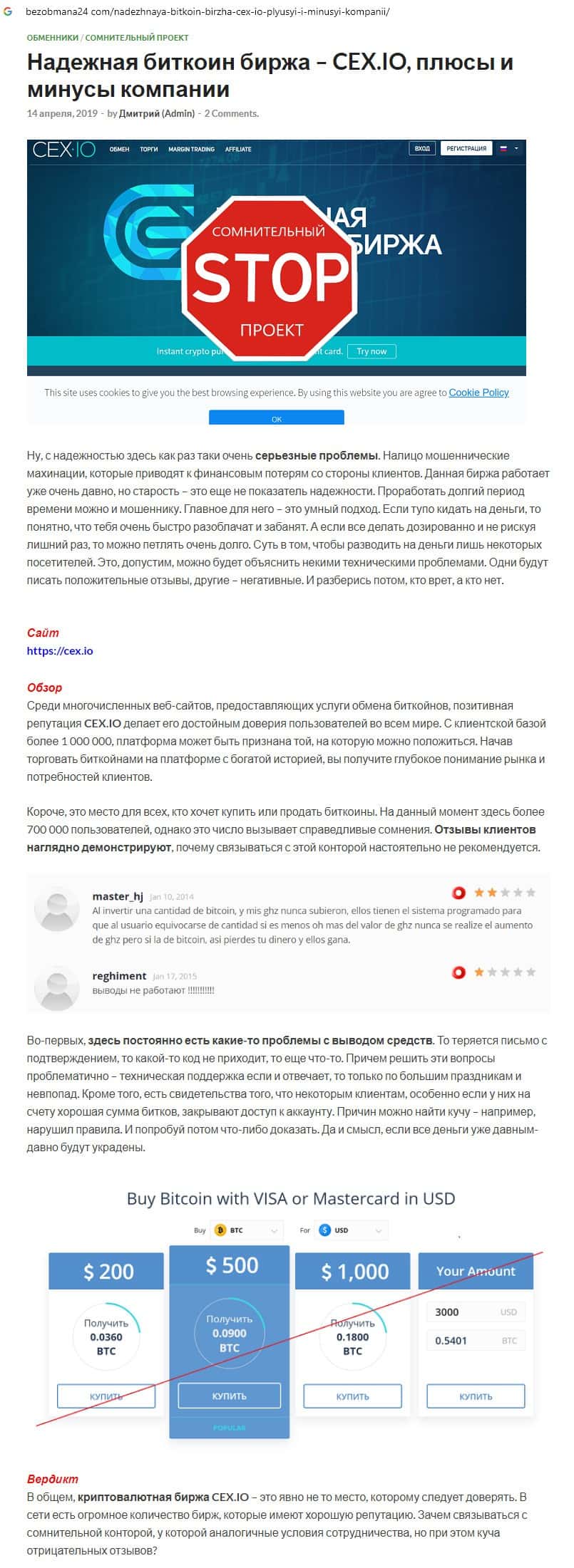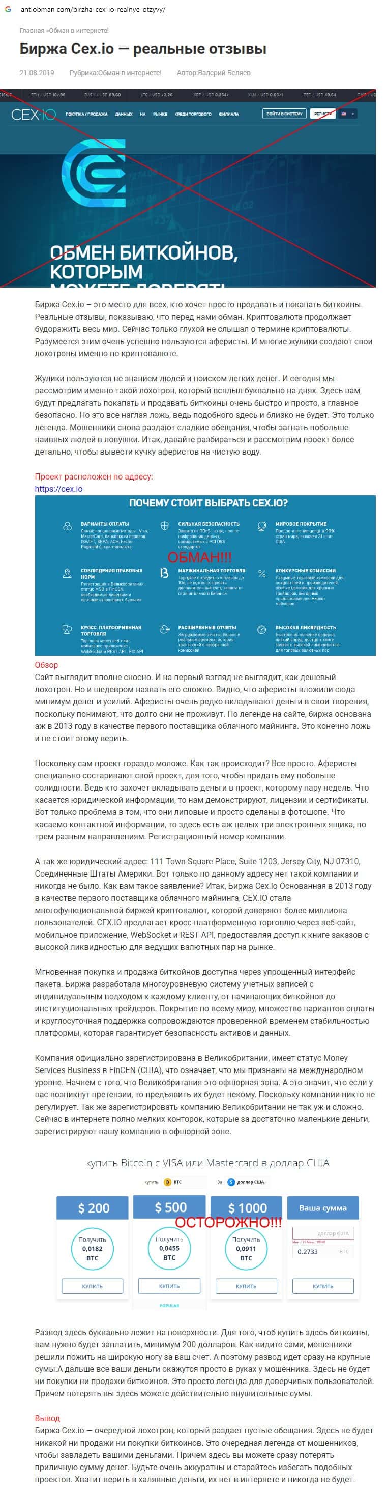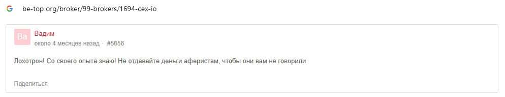 - Отзывы о шулерах CEX, ныне присутствующие во всемирной паутине