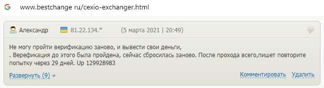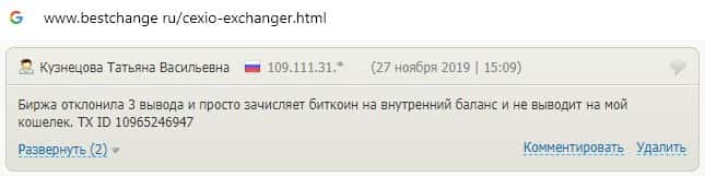 Перед нами мошенники чистой воды CEX, подтверждением чему является ниже предоставленный комментарий одного из пострадавших.
