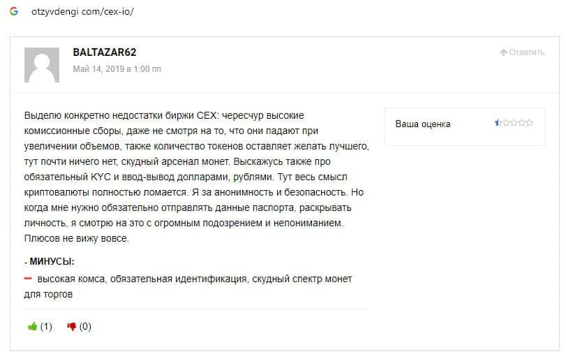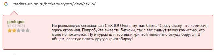 Пользователи глобальной сети-интернет жалуются на высокую комиссию на сайте скам-организации CEX, что является одним из главных недостатков данной крипто-биржи.