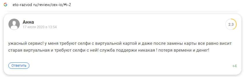 Автор ниже предоставленного отзыва пишет, что техническая поддержка шараги СиИИкс перестала отвечать после того, как клиент прошел верификацию.