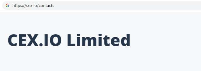 Здесь мы видим, что перейдя по одной из предоставленных ссылок CEX не указано никакой информации о месте регистрации компании, а также о юридическом лице.