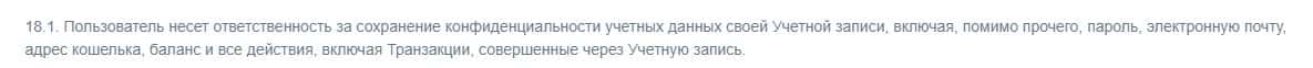 Аферисты CEX уведомляют пользователей сайта о том, что ответственность за конфиденциальность данных лежит исключительно на клиенте.