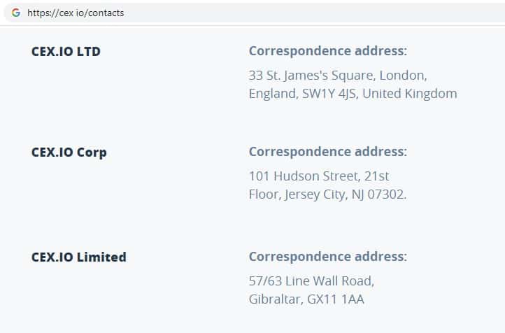 На сайте крипто-лохотрона CEX указано, что юридическое лицо, которому принадлежит бренд, зарегистрировано в оффшорном государстве Гибралтар.