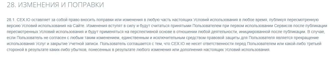 Ниже предоставлена полная версия клиентского соглашения жульнической организации CEX, которое является подтверждением того, что перед нами очередная скам-контора.
