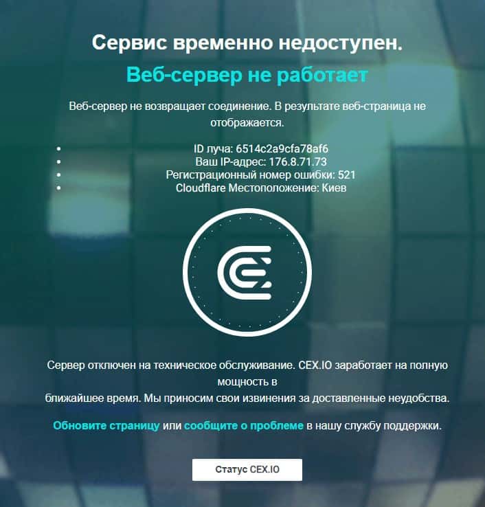 О технических неполадках на сайте мошенников CEX