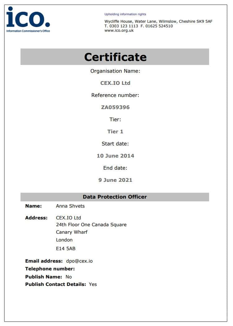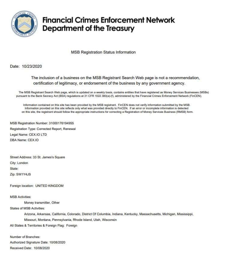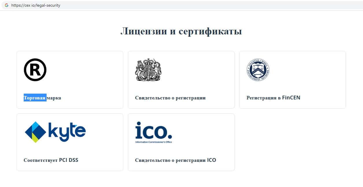 - Информация о лицензии криптовалютной биржи CEX