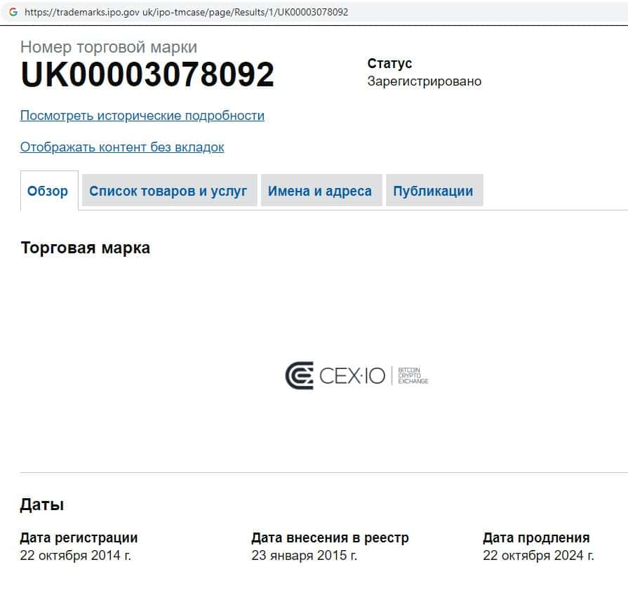 Юридическое лицо CEX.IO Limited владеет мошенническим интернет-ресурсом криптовалютной биржи СиИИкс, у которой оффшорная регуляция.