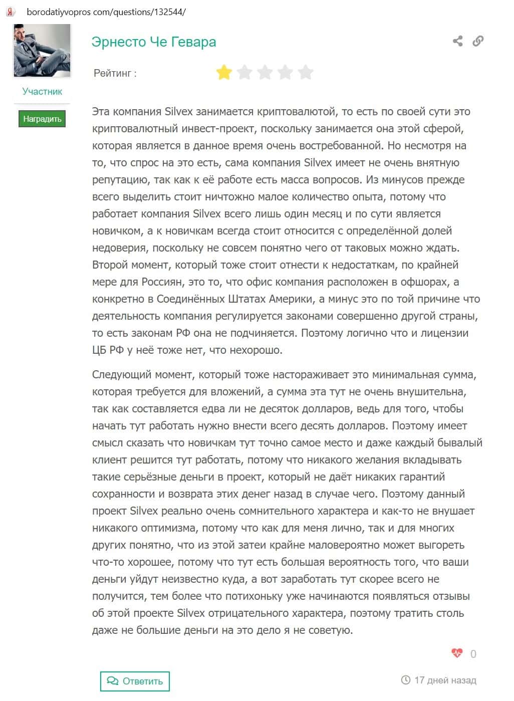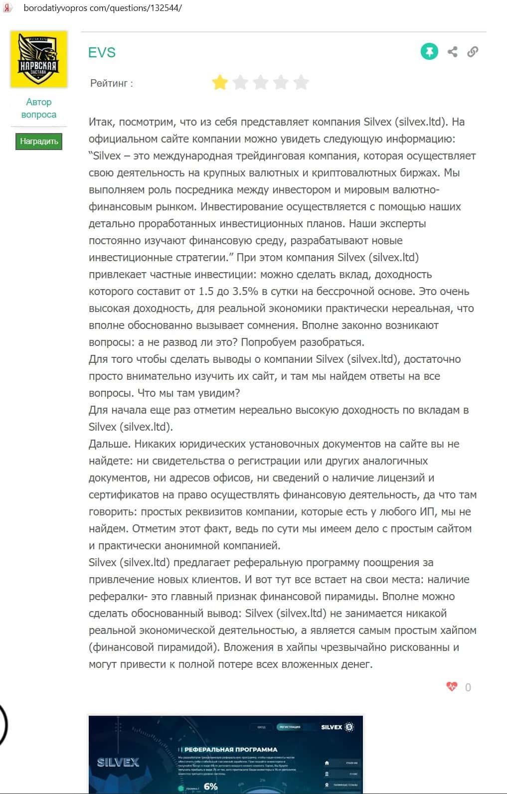 - Отзывы о мошеннической компании Silvex Ltd, найденные в сети