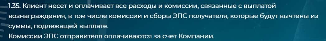 В пункте 1.35 опять идет речь об оплате комиссии за выплату вознаграждения, которую компания Silvex Ltd взимает с клиентов.