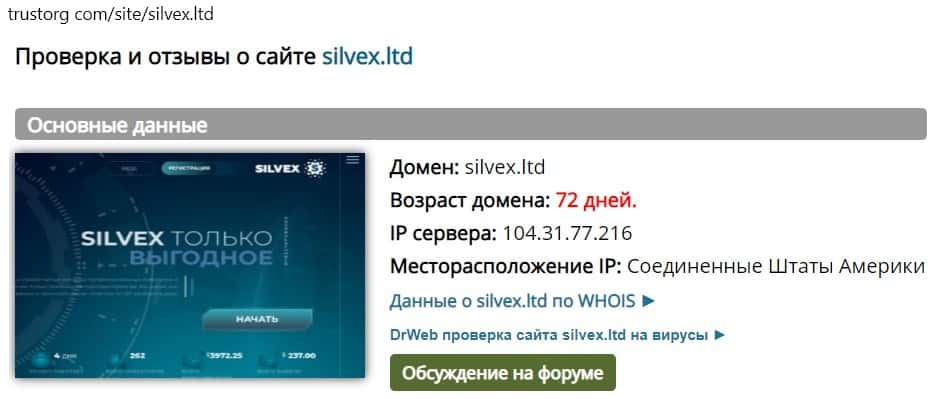- Показатели сайта псевдоброкера Silvex Ltd