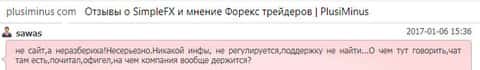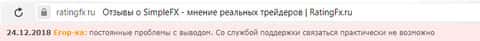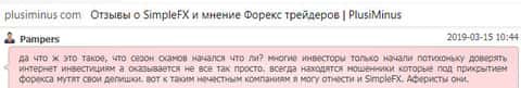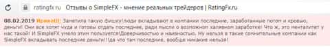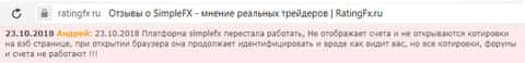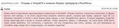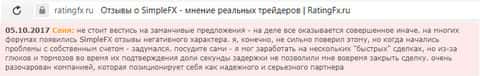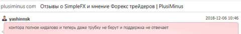В ещё одном отзыве об аферистах SimpleFX мы можем увидеть ту же самую проблему. Клиенту не оставляют никакого выбора, только лишь отдать свои деньги с концами. Обещая сказочные заработки, шулера Симпл ФХ попросту дурят своих клиентов и забирают их деньги.