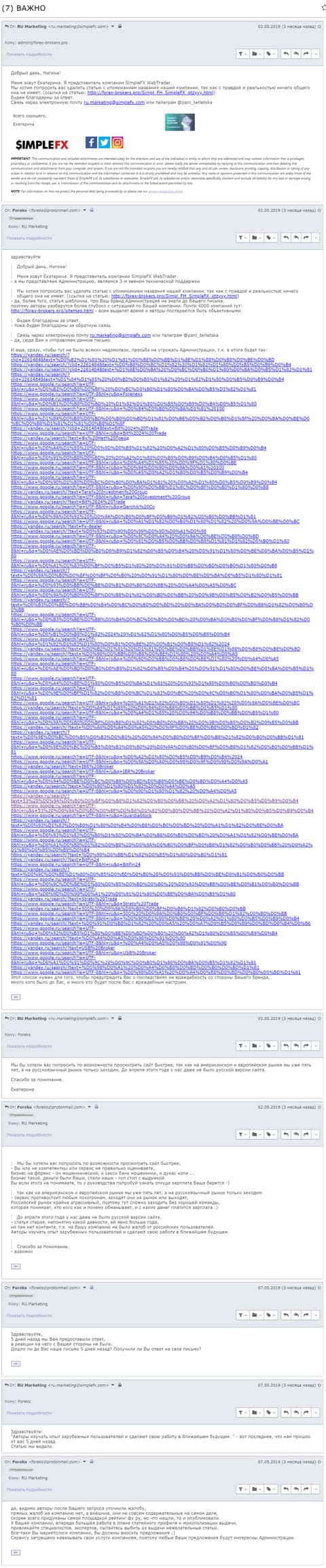 Маркетологи из Симпл ФХ донесли и свою позицию тоже, по поводу данной статьи. Переписка выкладывается в полном объеме, чтобы у общественности не было никаких вопросов по кулуарным обсуждениям редакционной политики ресурса.