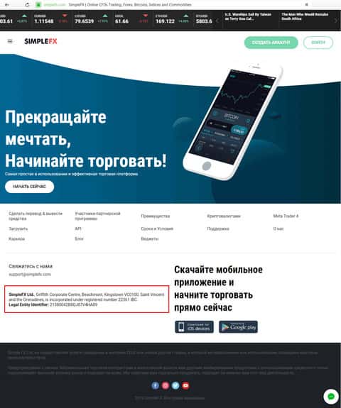 - Контакты, представленные на сайте аферистов SimpleFX