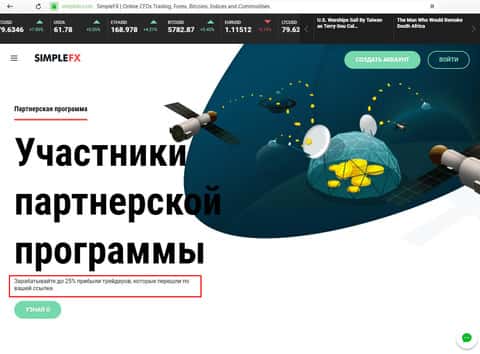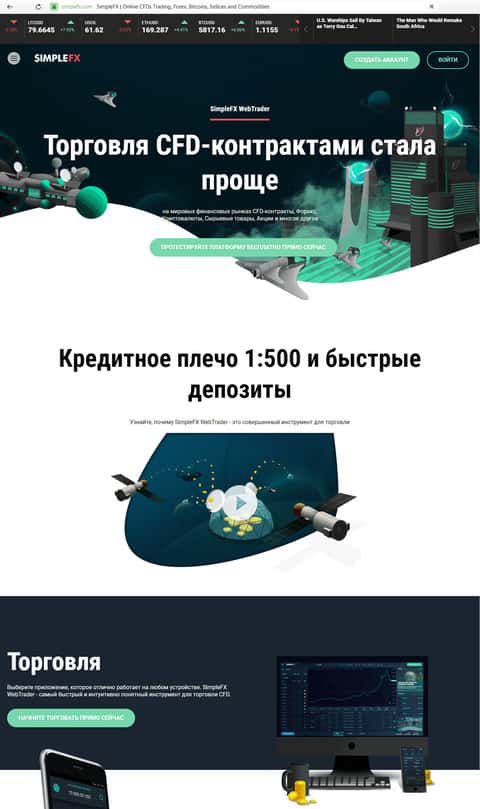 Теперь перейдём непосредственно к сайту мошенников Симпл ФХ. В общем и целом, ничего необычного. Аферисты всеми силами пытаются убедить будущих жертв положить денег на счёт. Этих денег после ввода, как понимаете, клиенты шарашки SimpleFX больше не увидят.