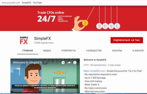 - электронная почта support@simplefx com