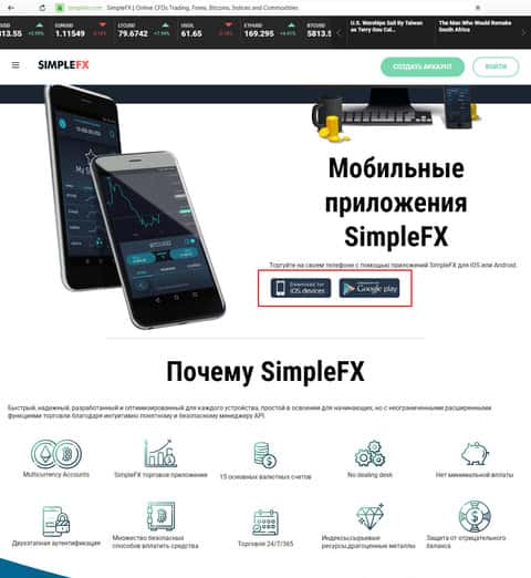 Интересен здесь другой момент. Шулера SimpleFX предлагают для скачивания на мобильные устройства свою собственную торговую платформу. Стоит предупредить, что её скачивание может грозить вам поломкой устройства и хищением ваших личных данных.