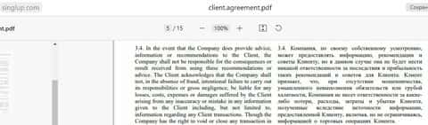 Взглянем на некоторые пункты Клиентского соглашения. Даже если шулеры Сингл Ап предоставят вам информацию, то никакой ответственности за ее последствия они на себя не принимают.
