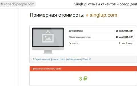 Ниже представляем вашему вниманию стоимость фуфлосайта singlup com. Как видите, действительно, абсолютно пустой и никчемный ресурс, не стоящий вашего внимания.