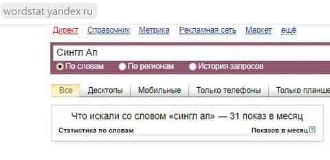 В поисковике Яндекс за месяц по бренду "Сингл Ап" было сделано всего 31 запрос.