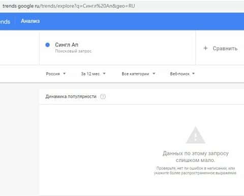 В поисковике Google ситуация с популярностью выглядит следующим образом. По бренду "Сингл Ап" Google не может систематизировать данные из-за их низкого количества.