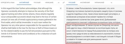 Слишком много в этой истории с SlushPool "но". Крутейшая платформа для майнинга, но по отзывам, это не так. Хорошая репутация, но на сайтах, рекламирующих пирамиды. Да и отзывы подливают масла в огонь правомерности этой конторы. К тому же, еще одно "но" всплывает и на самом веб-сайте конторы Слюш Поол. Просто вдумайтесь, может ли серьезная контора, занимающаяся передовыми крипто технологиями, не полностью перевести сайт с русского на английский. Наше скромное мнение, серьезная контора такого бы точно не допустила, а вот второсортный порожняк с намёком на причастность к мошенничеству, вполне мог бы.
