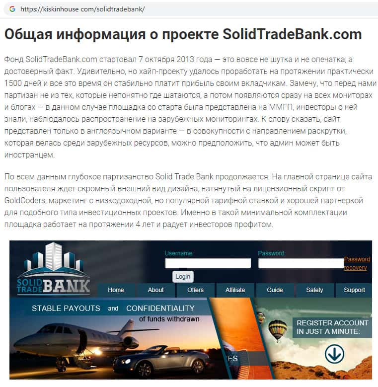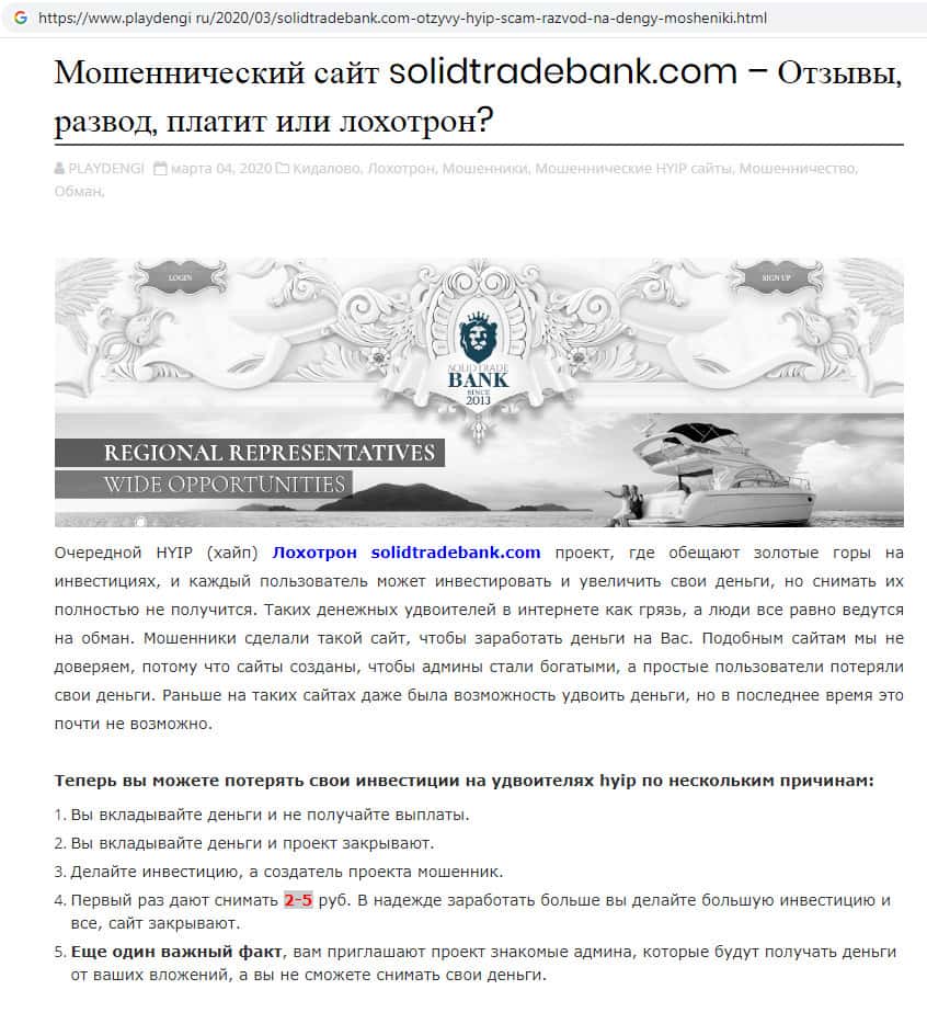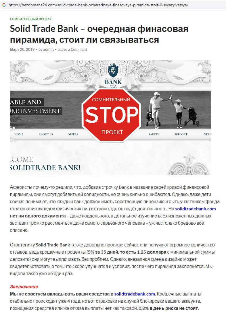 - Контора SolidTradeBank не является банком, на самом деле это очередная финансовая пирамида