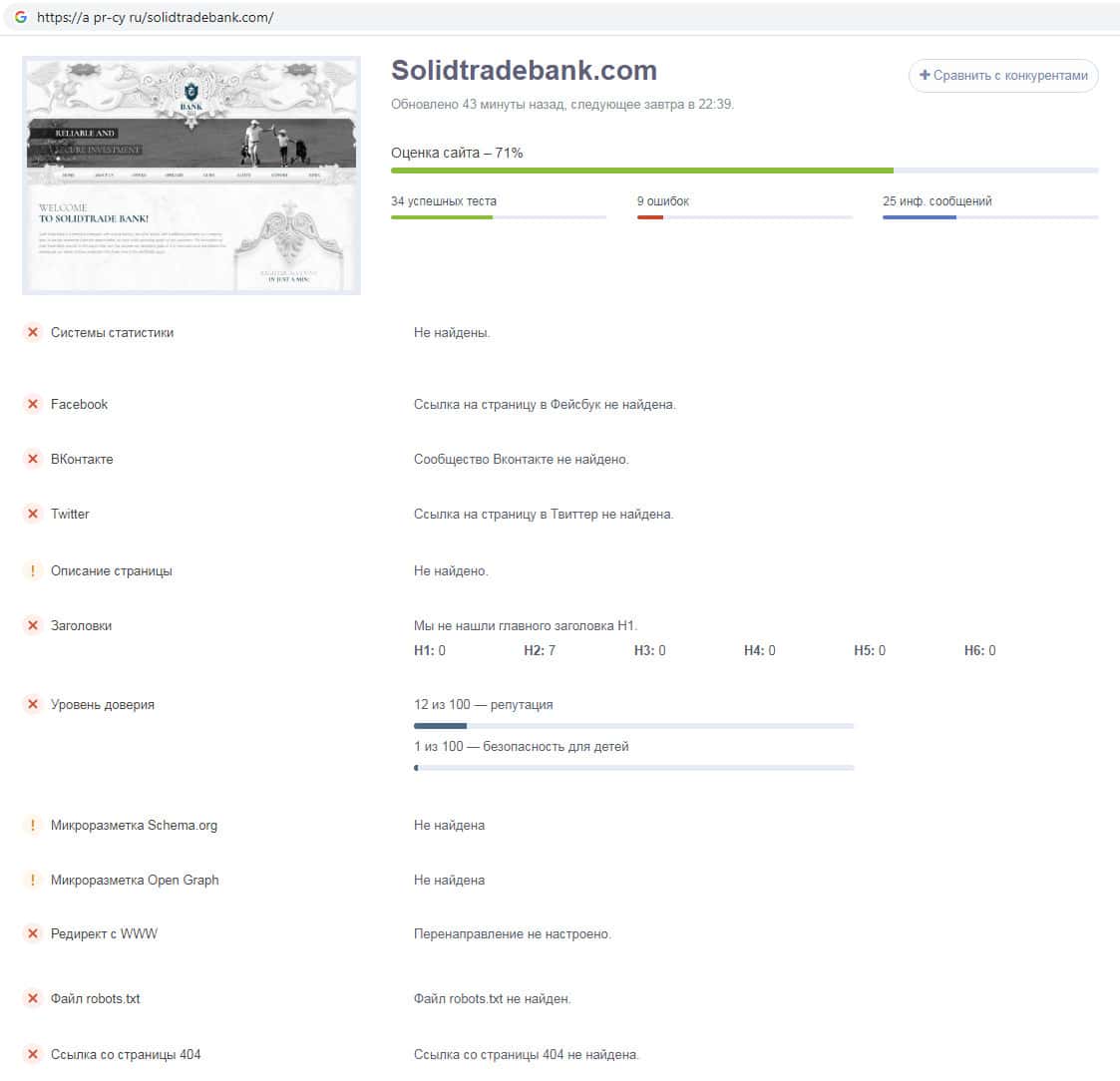- Сайт жульнической конторы SolidTradeBank оставляет желать лучшего