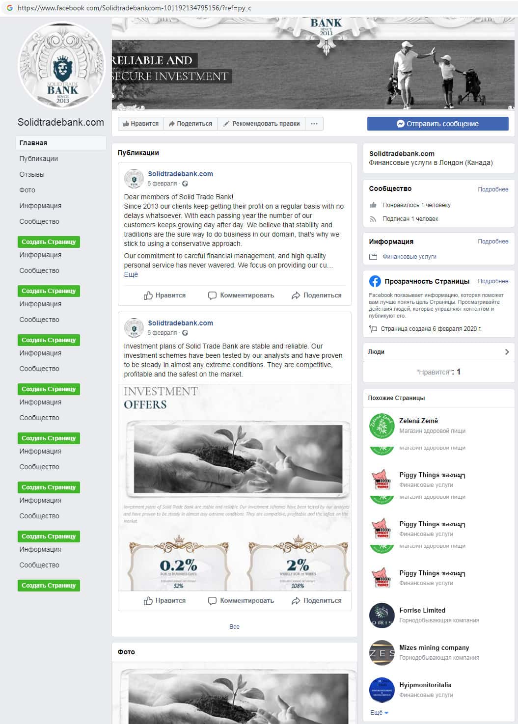 - Шулера SolidTradeBank зарегистрировались в социальной сети Фейсбук