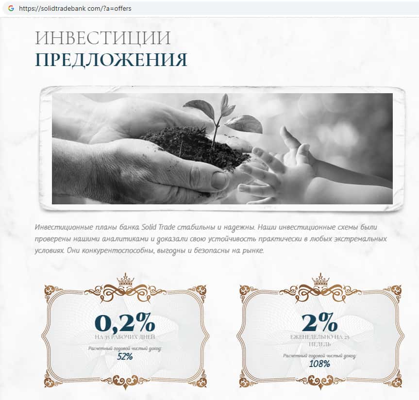 - Инвестиционные предложения на интернет-портале жульнической конторы Солид Трейд Банк