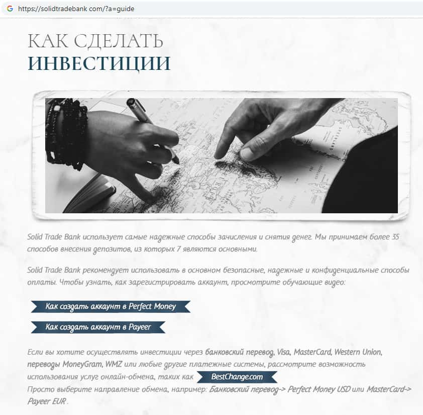 Что обещают мошенники SolidTradeBank пользователям своего сайта?