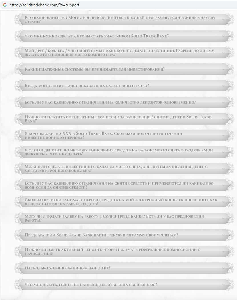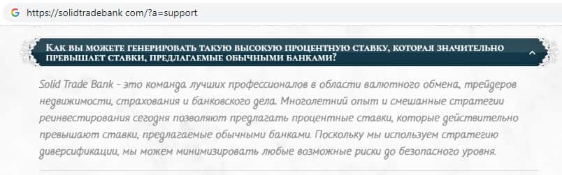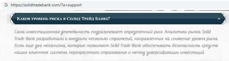 - Мошенники Солид Трейд Банк заранее подготовили ответы на якобы часто задаваемые вопросы