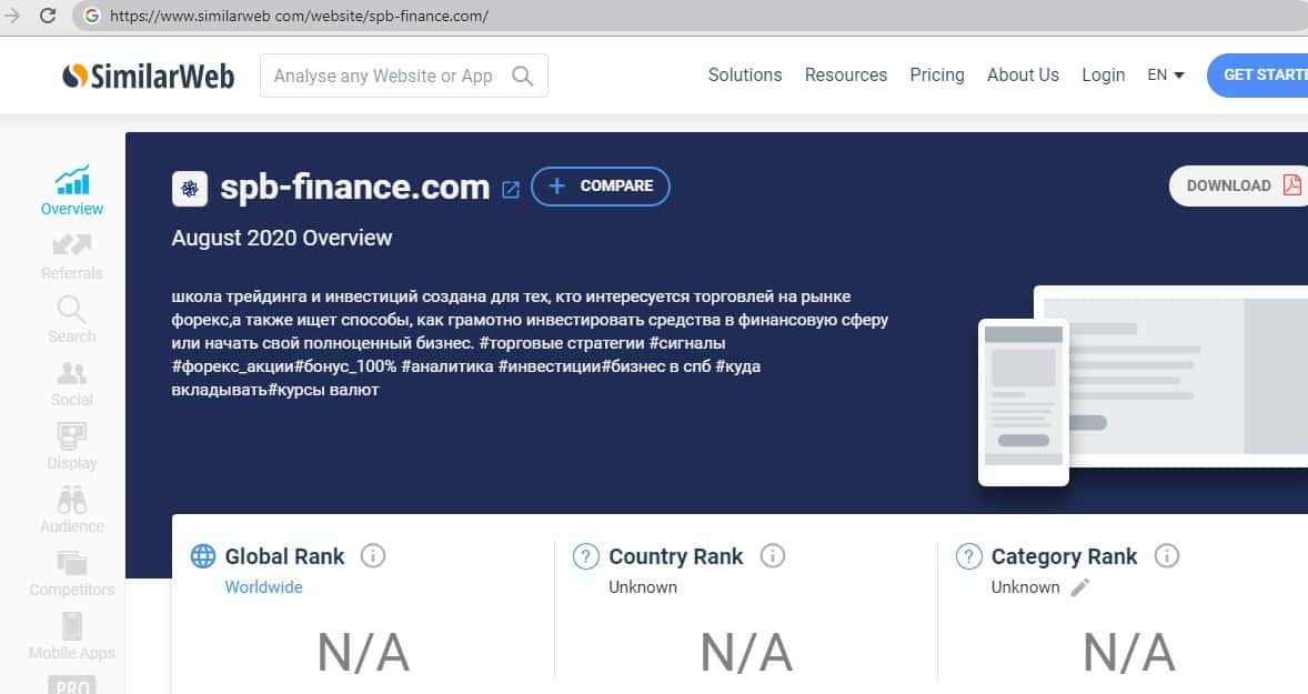 Данных об источниках трафика мошенников СПБ Финанс нет. Все данные которые подобного рода компании должны предоставлять, аферисты SPB-Finance закрыли.
