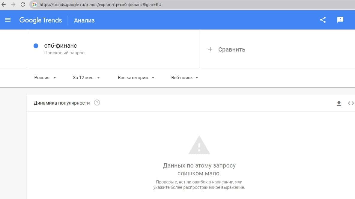 В данный момент любое название бренда в плоть до "спб-финанс" будет показывать аналогичную картину которая свидетельствует низкому спросу на данный бренд.