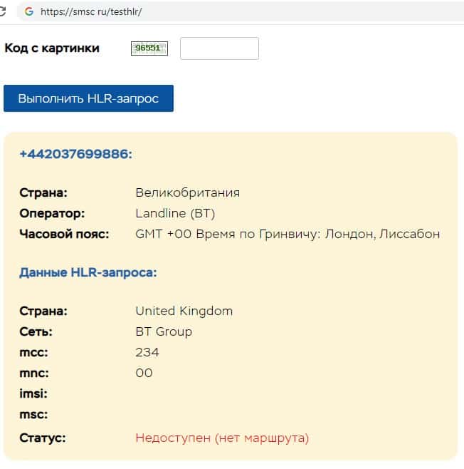 smsc ru testhlr - сервис проверки телефонных номеров посредством HLR-запроса