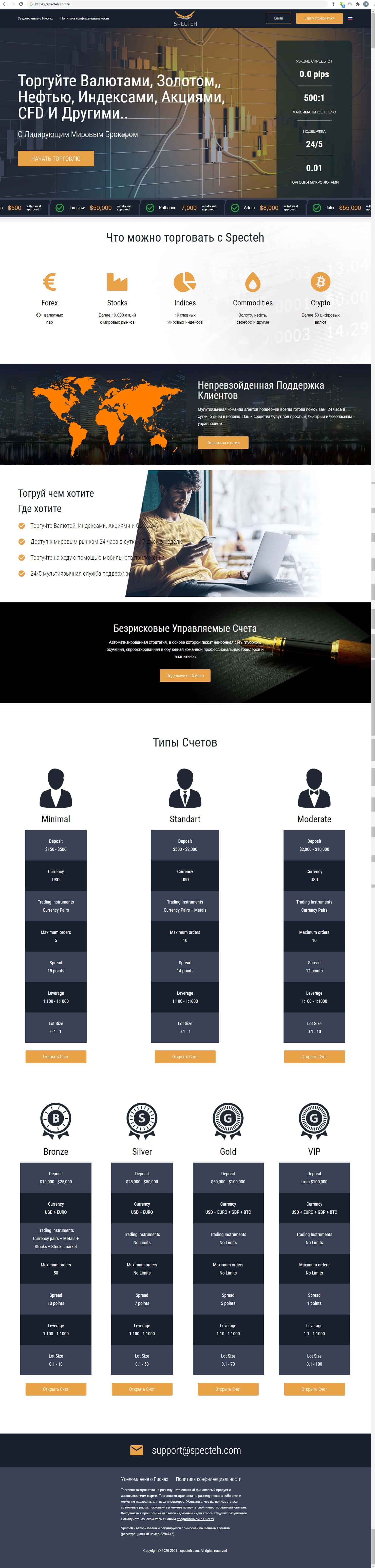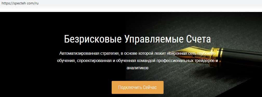 - Обзор главной страницы сайта аферистов лжеброкера Спецтех