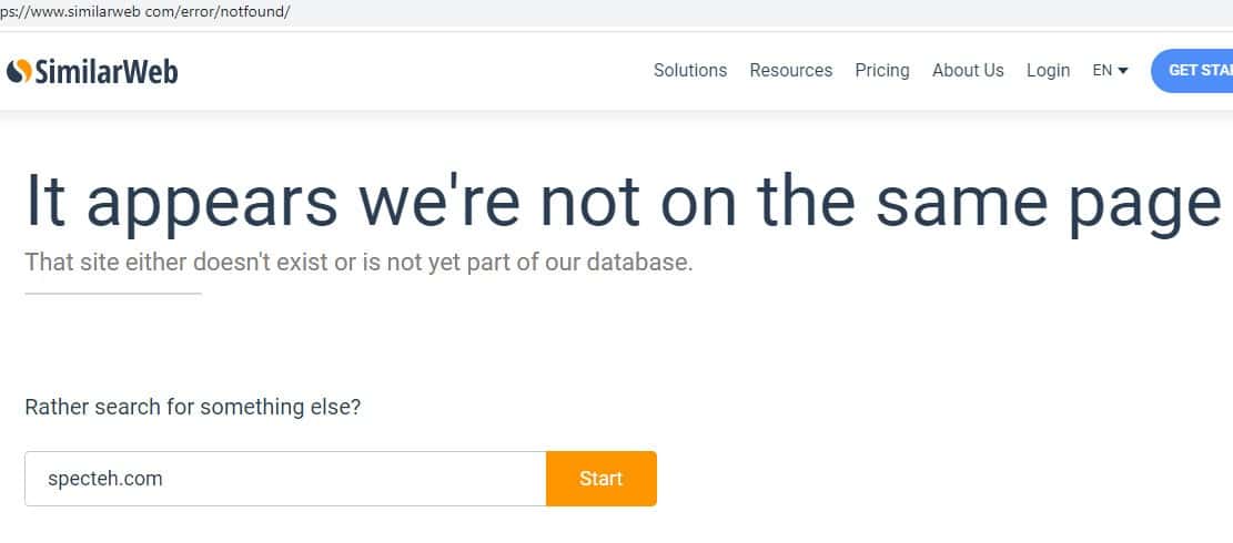 Портал similarweb отвечает отказом на наш запрос анализа сайта брокерской конторы Спецтех, ссылаясь на его отсутствие в своей базе сайтов.