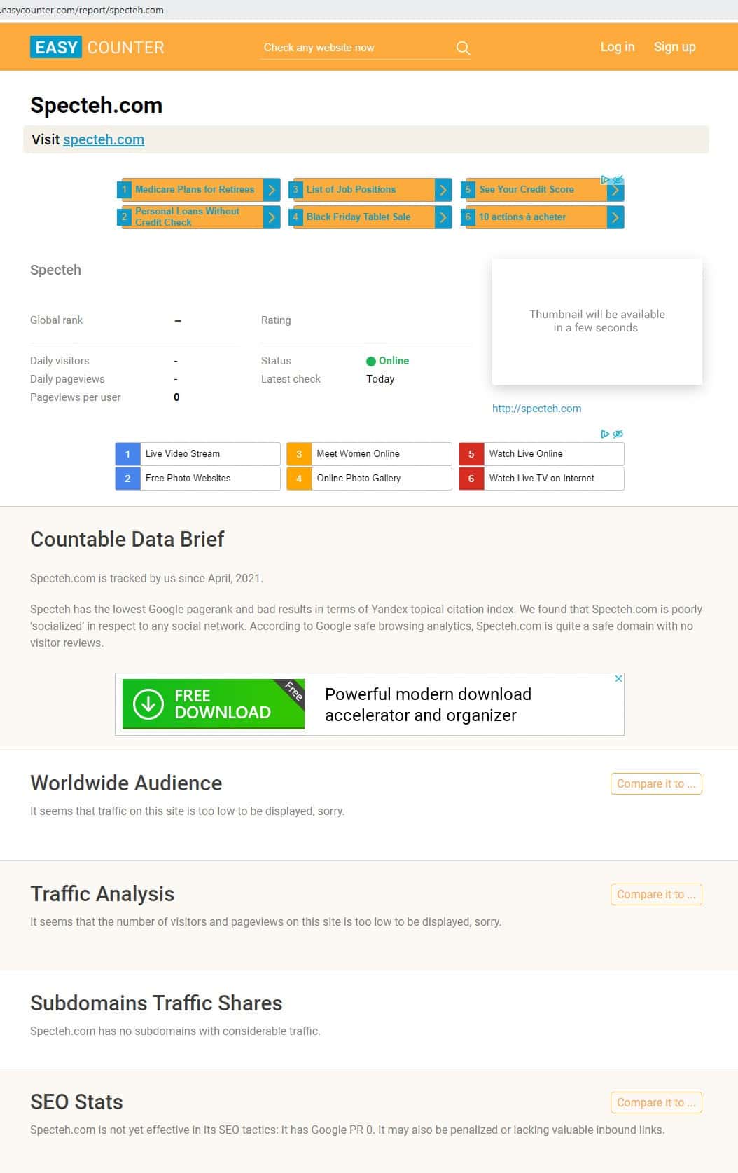 - Анализ домена specteh com и его трафика средствами портала easycounter
