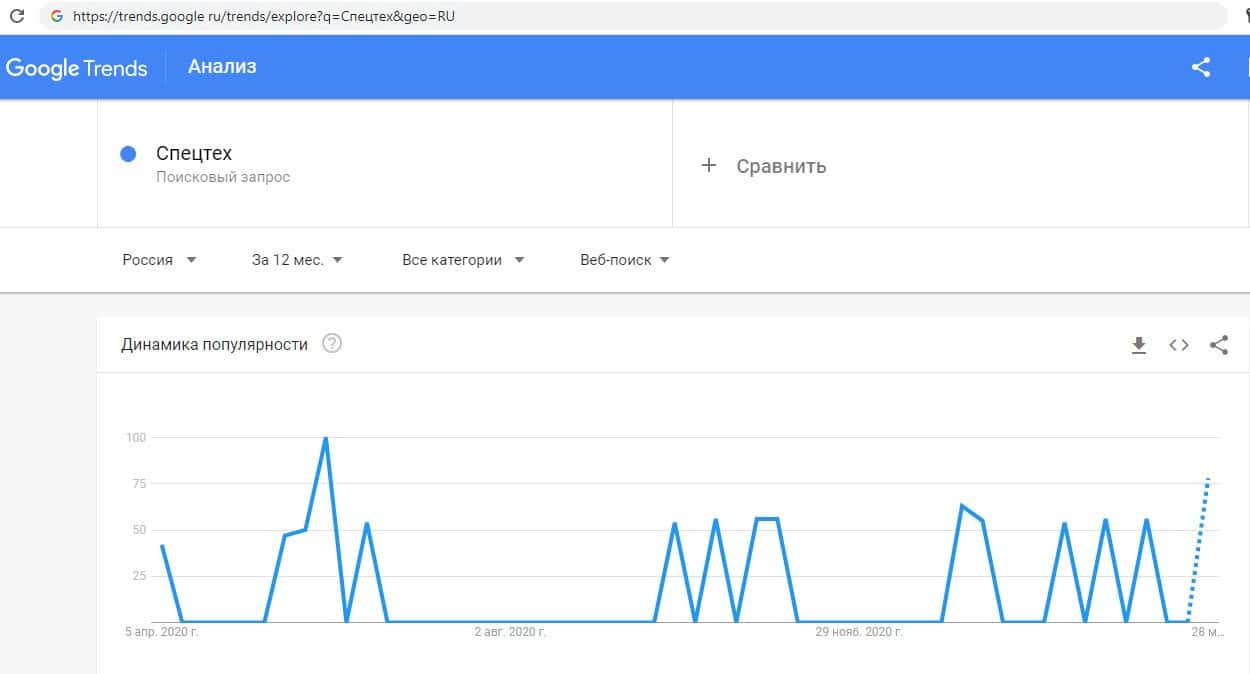Вот только поисковые запросы сайта брокерской конторы "specteh.com" являются честным показателем популярности поиска информации о данном бренде, и они совсем незначительны.