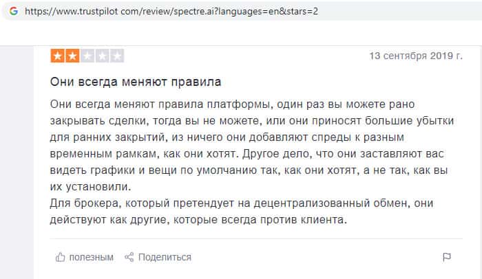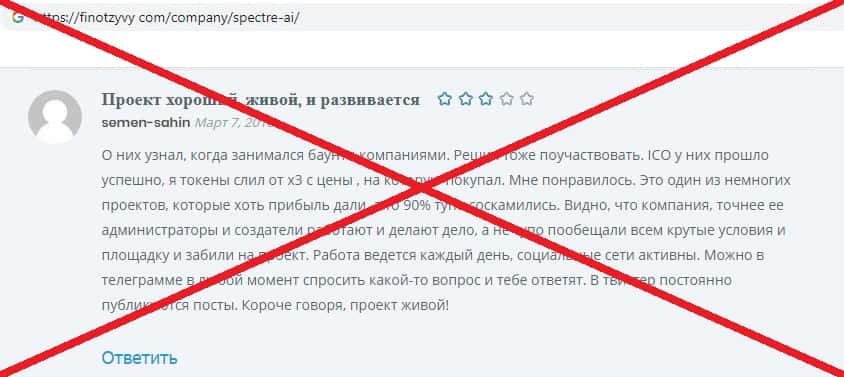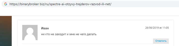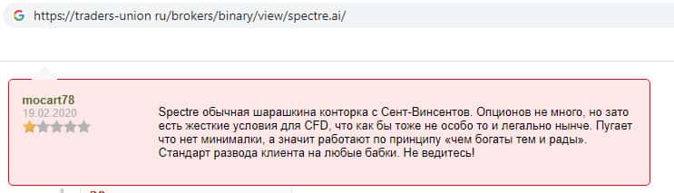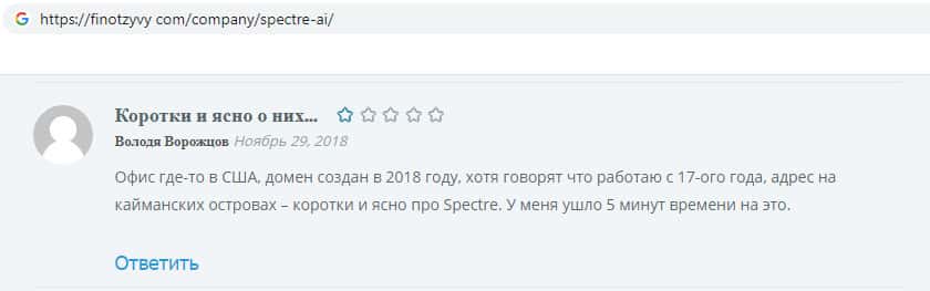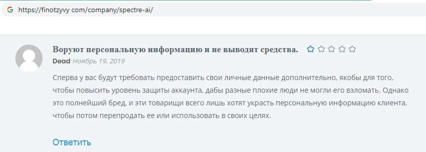 Отсутствие положительных отзывов о кидалах Спектре Аи