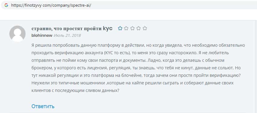 Мнение других интернет ресурсов о фирме кидал Spectre Ai