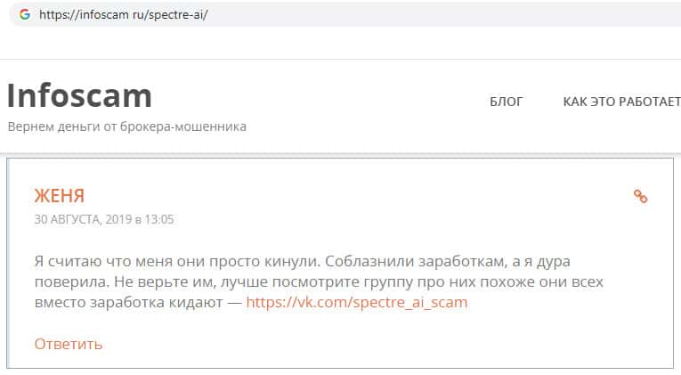infoscam ru - сайт с отзывами о разводилах Spectre Ai