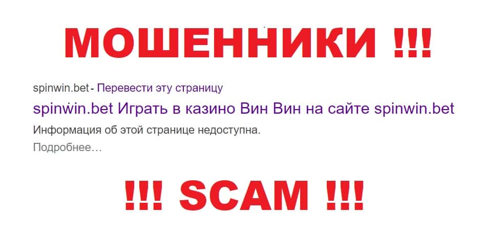 Спин Вин - еще одна мошенническая организация на просторах интернета, собирающая с людей деньги. Это очередное он-лайн казино, которое предлагает покрутить рулетку в надежде на быстрый выигрыш. Но не все так радужно: стало известно, что проект остановил выплаты и все средства игроков теперь оказались в карманах организаторов лохотрона. Как выяснилось, казино имеет поддельное программное обеспечение и работает без лицензии. Категорические не советуем связываться с проектом SpinWin Bet!
