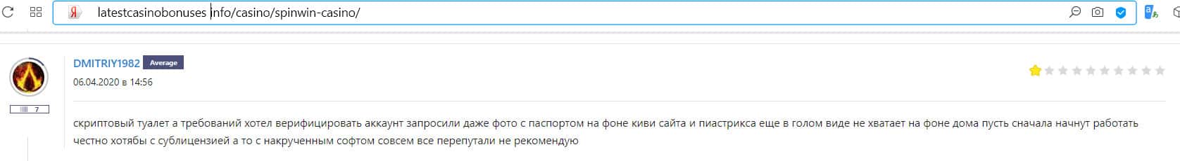 Отзывы обманутых клиентов о казино Спин Вин
