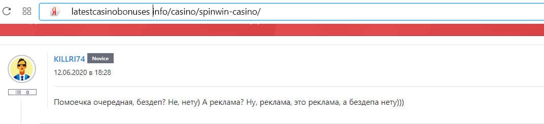 - Клиенты казино Спин Вин не доверяют ему и называют лохотроном