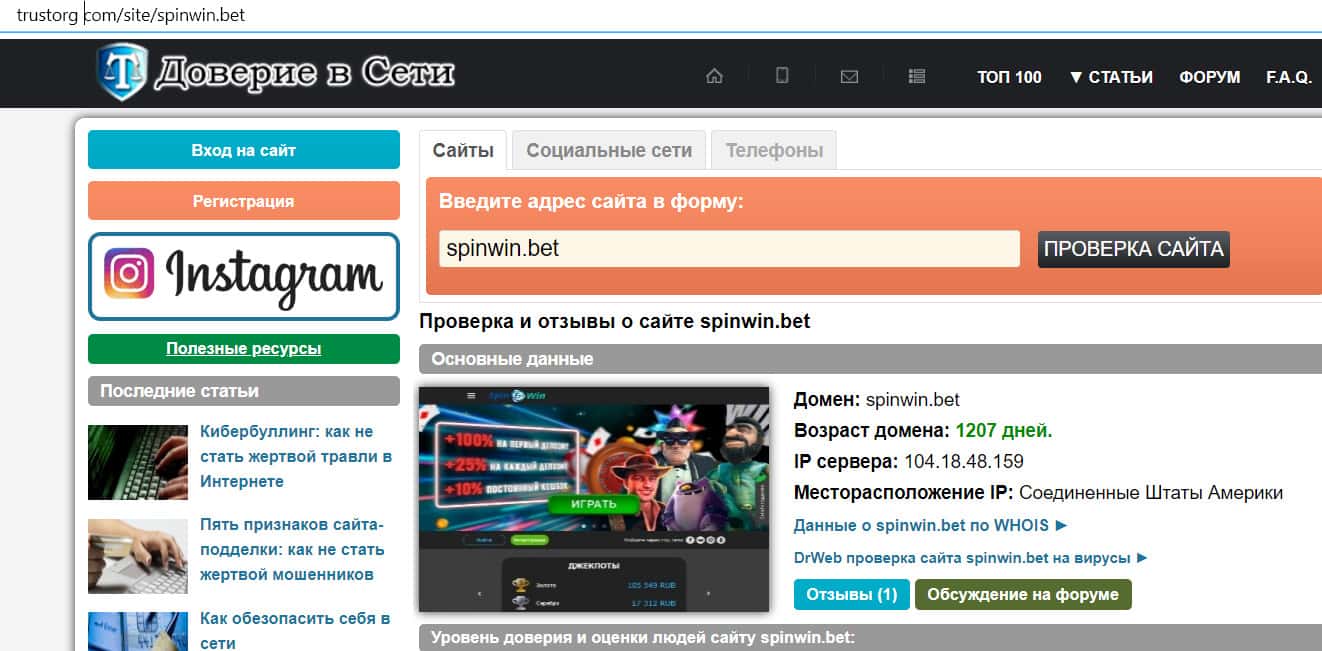 Возраст доменного имени сайта spinwin bet