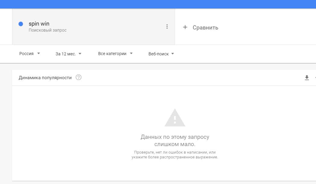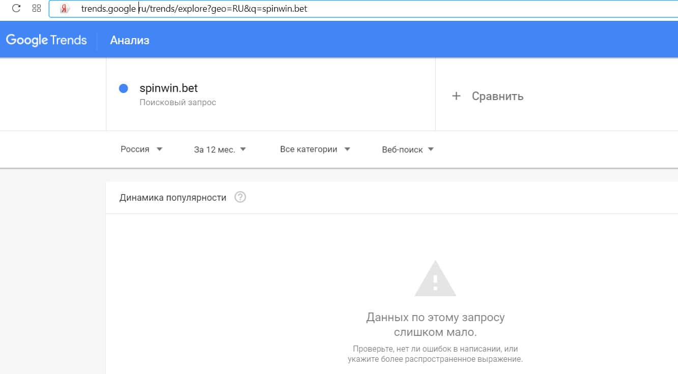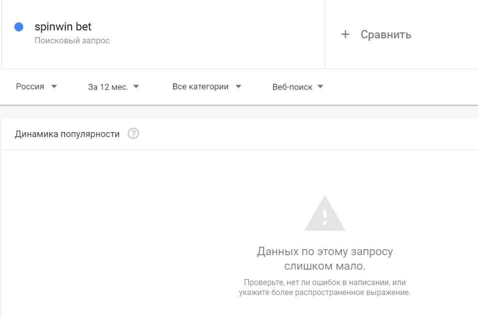 Запросы от пользователей по доменному имени "spinwin bet" в сервисе Гугл Тренд почти не поступали.